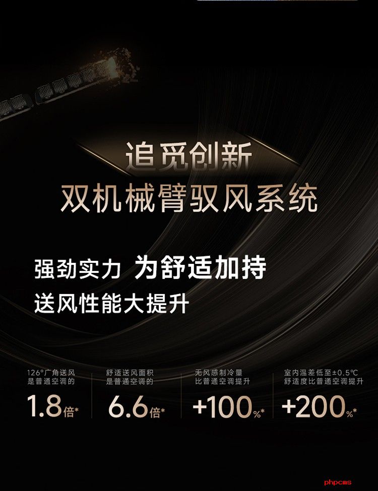精准“四肢”——双机械臂与康达翼:两条可独立伸缩、摆动的机械臂是系统的执行终端。它们彻底突破了传统导风板的运动局限,不仅可以大幅前伸拓宽送风角度,更能左右独立控制。再结合最大角度可达135°的康达翼矩阵,就像为风装上了智能方向盘,实现对气流方向和力度的多维精细调控。